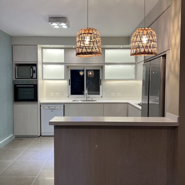 Un departamento con buena estructura pero que necesitaba renovarse por completo. Rediseñamos la distribución para maximizar la entrada de luz natural, renovamos pisos y revestimientos, optimizamos el espacio de guardado y actualizamos la iluminación. El resultado: un hogar luminoso, organizado y funcional donde cada ambiente invita a disfrutarlo