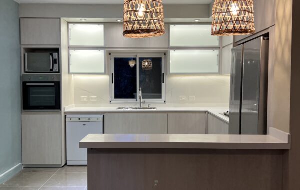 Una propiedad con potencial pero deteriorada que debía prepararse para alquiler. Renovamos pisos en toda la vivienda, rediseñamos mobiliario de cocina y baño para duplicar el guardado, actualizamos instalaciones eléctricas y sanitarias, y aplicamos una nueva paleta de colores neutra y atemporal. Una intervención estratégica que revalorizó la propiedad combinando diseño, funcionalidad y presupuesto ajustado.