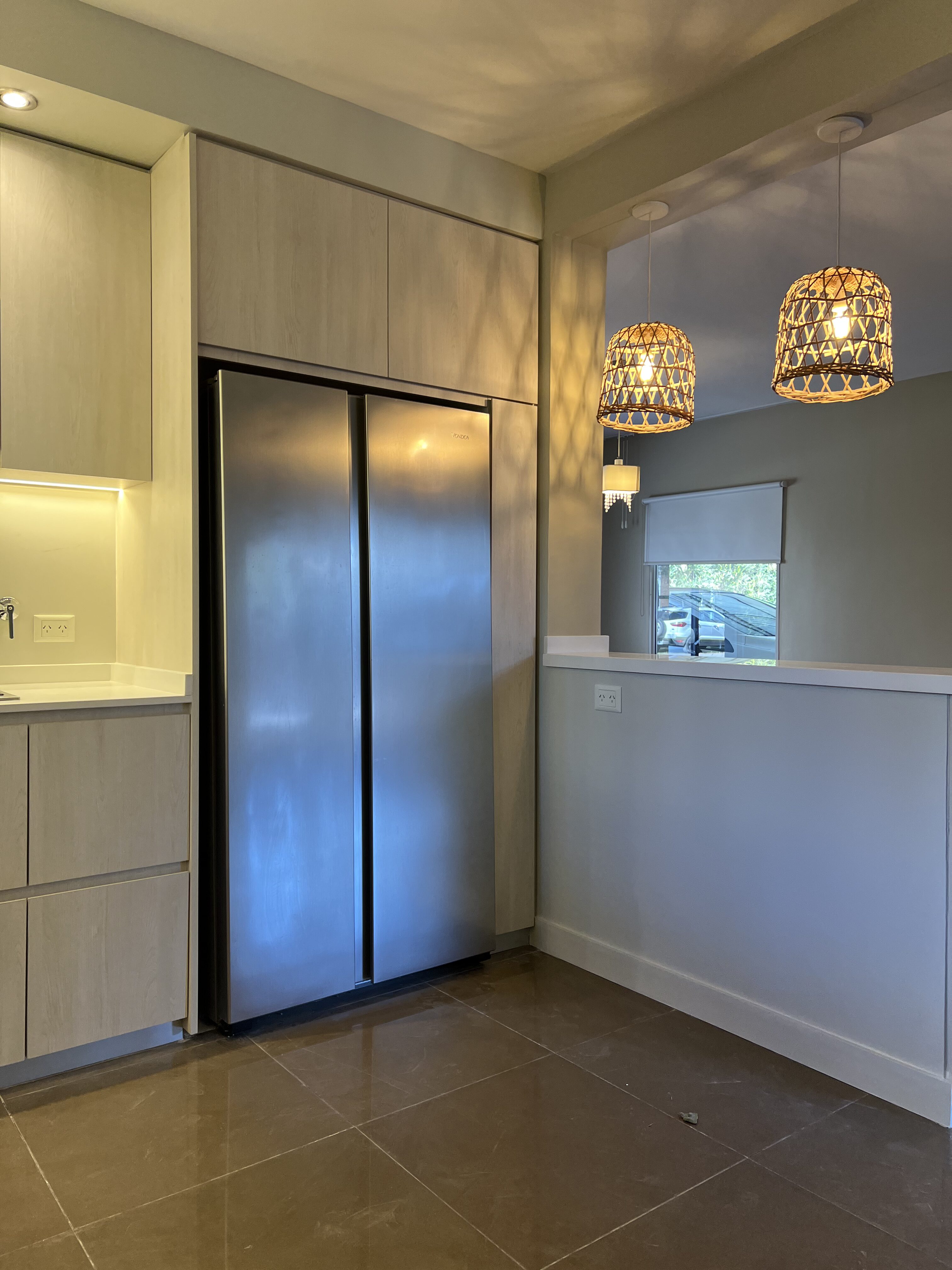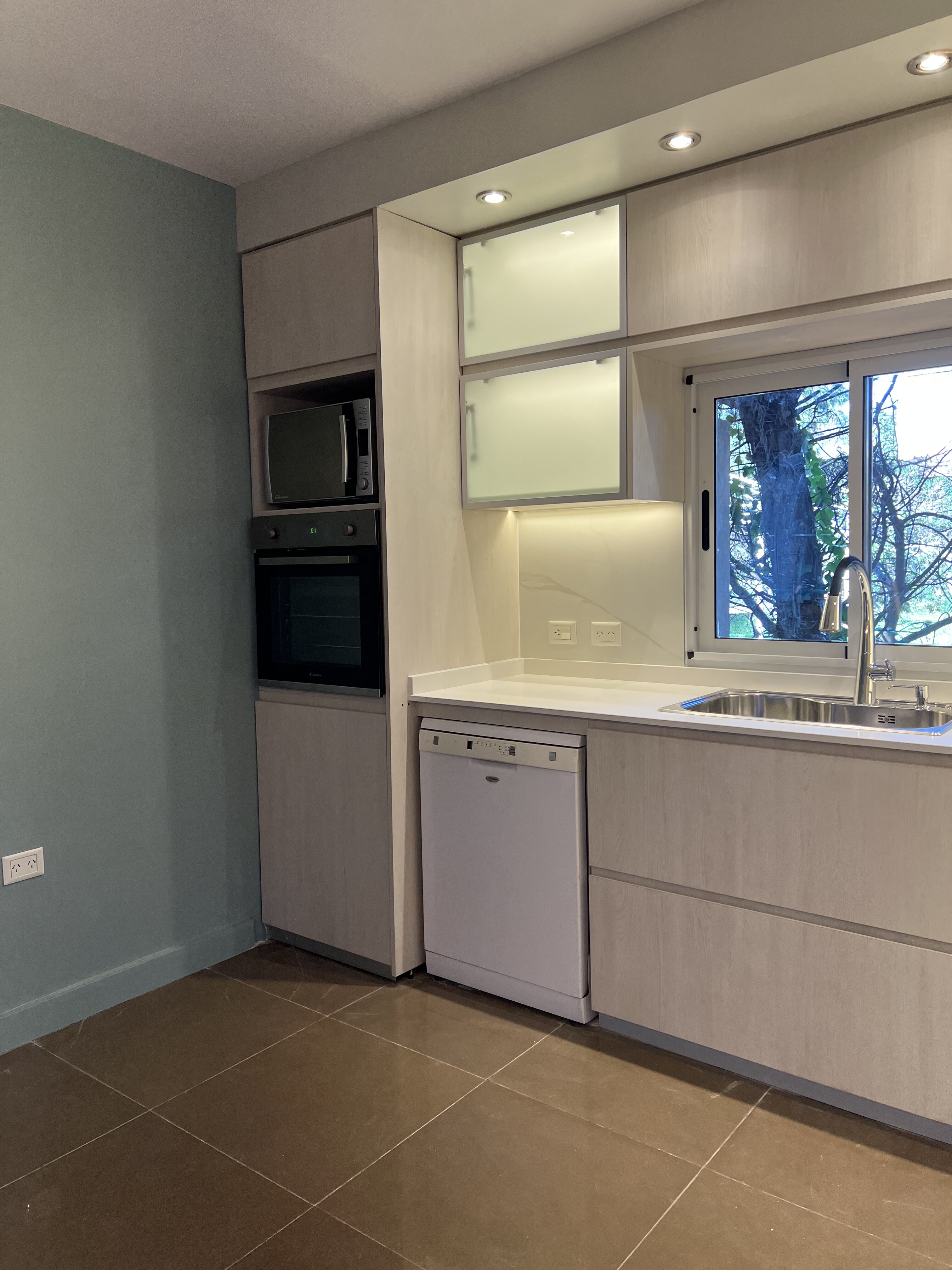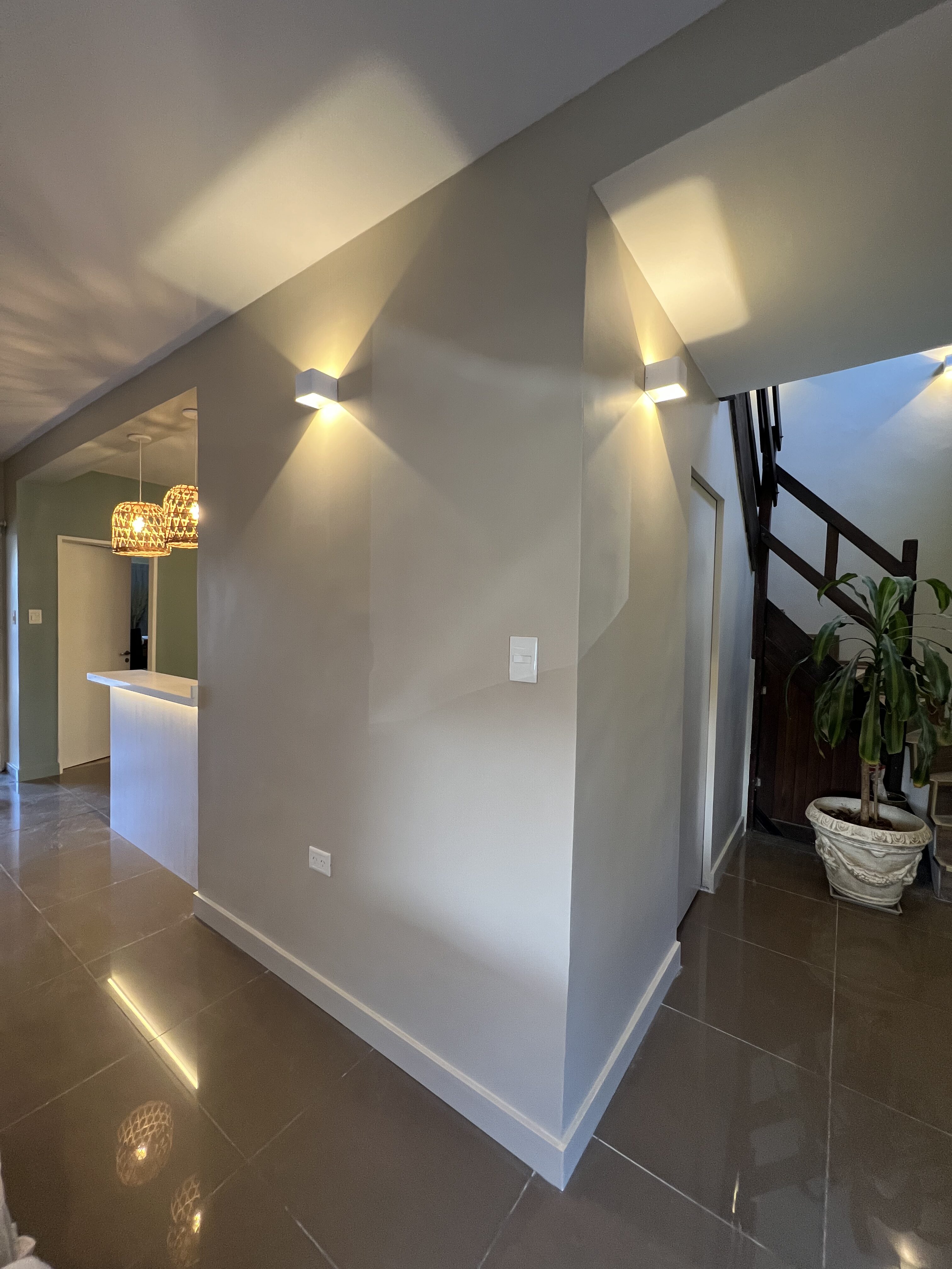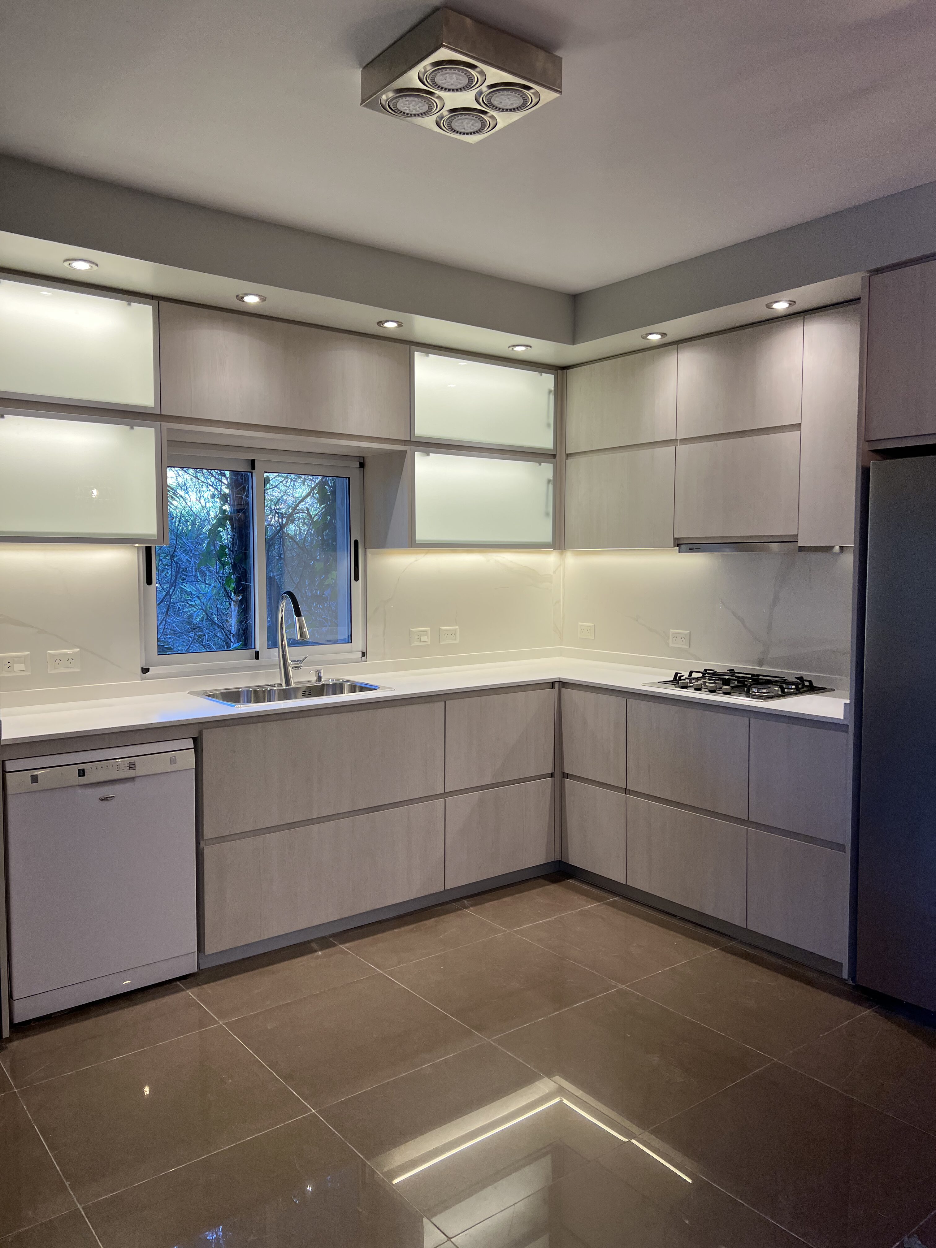 Una casa en barrio privado que necesitaba modernizarse y ganar funcionalidad. El corazón del proyecto fue transformar la cocina: eliminamos paredes para integrarla al living, creamos una nueva isla central que funciona como área de preparación y encuentro, y rediseñamos la iluminación para aprovechar la luz natural. Una intervención que conecta espacios y mejora la vida cotidiana de toda la familia.